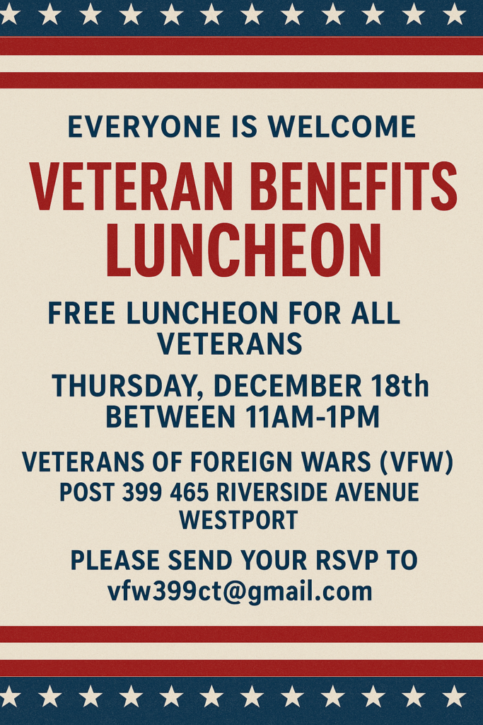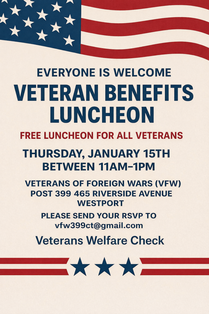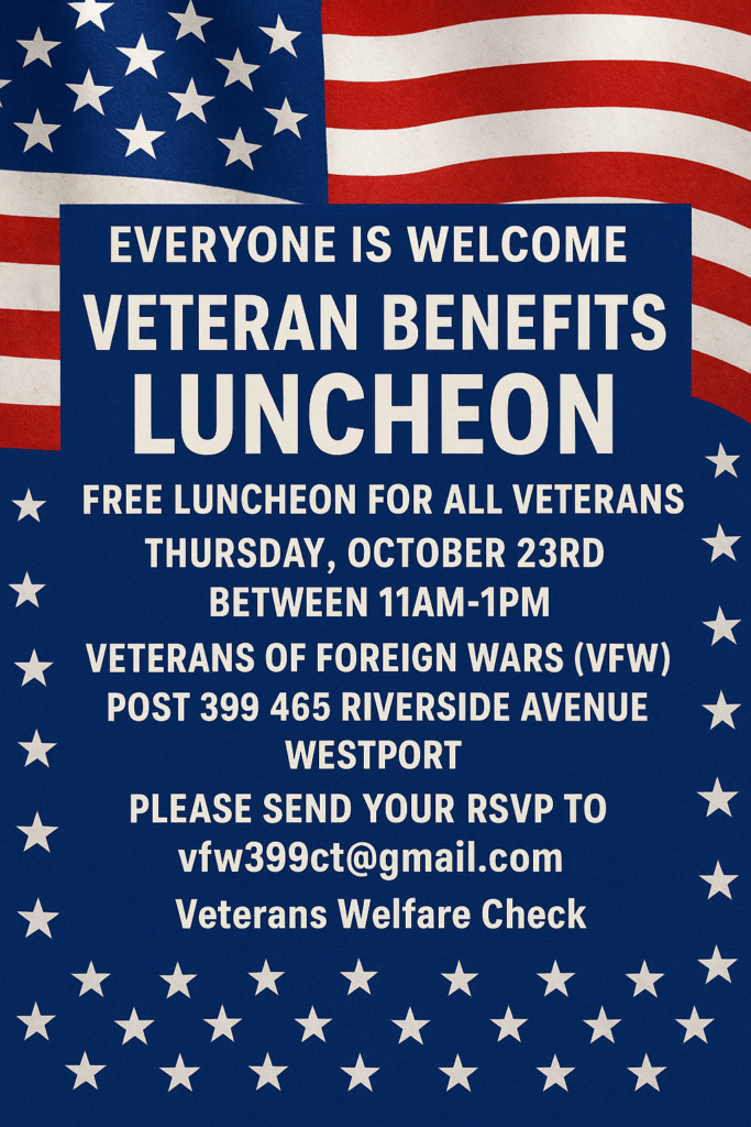 Established by eleven World War 1 veterans, VFW Post 399 has been the heart and soul of the veteran community and a Westport institution since April 27th 1920. Named for World War 1 veteran, Private Joseph J. Clinton from Westport who was killed in France just 4 days before the armistice. It wasn’t until March of 1948 that the Post had a permanent home in Westport. On this date, Mrs. Augusta Clinton Gaffney bequeath, in her will, her home and property on South Compo Road to VFW Post 399. Mrs. Gaffney was the mother of Private Joseph J. Clinton. VFW Post 399 relocated to the present Riverside Avenue location at the junction of Saugatuck Avenue, across from Treadwell Avenue in 1971.
